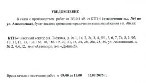 ⚡️Внимание ⚠️ Временное ограничение электроснабжения 12 сентября 2025 года Информация АРЭС