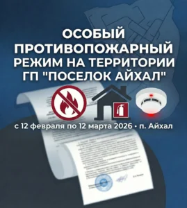 С 12 февраля по 12 марта 2026 года особый противопожарный режим дополнительно установлен на территории ГП «Поселок Айхал» (постановление №36 от 12.02.2026). В период действия режима: ✅ Проводятся пожарно-профилактические операции «Жилище» и «Безопасный гараж» ✅ Усилена разъяснительная работа с населением ✅ Продолжается установка автономных дымовых пожарных извещателей (АДПИ)