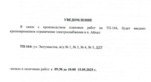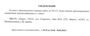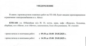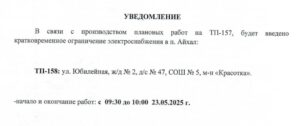 В связи с проведением плановых работ на трансформаторных подстанциях (ТП) будет временно ограничено электроснабжение на объектах: