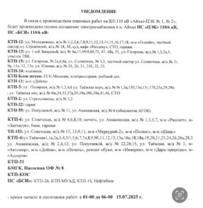 Внимание Временное ограничение электроснабжения с 01:00 ч. до 06:00 ч. 15 июля 2025 г.